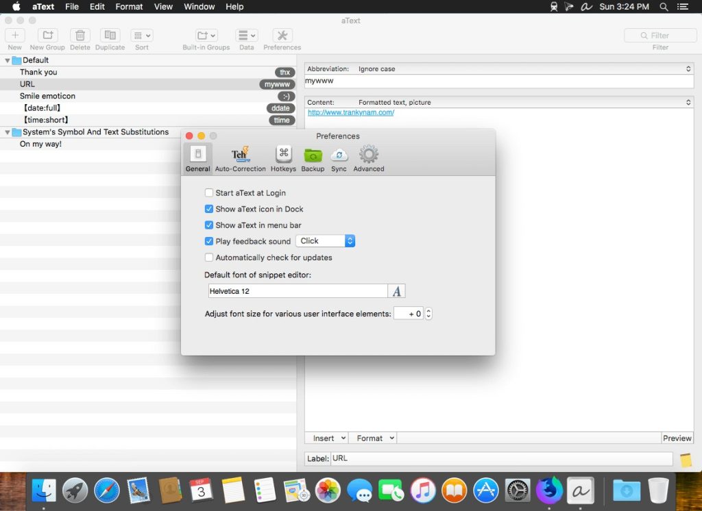 aText accelerates your typing by replacing abbreviations with frequently used phrases you define: for example, make an abbreviation “myname” to insert your name “First Middle Last” in any application.