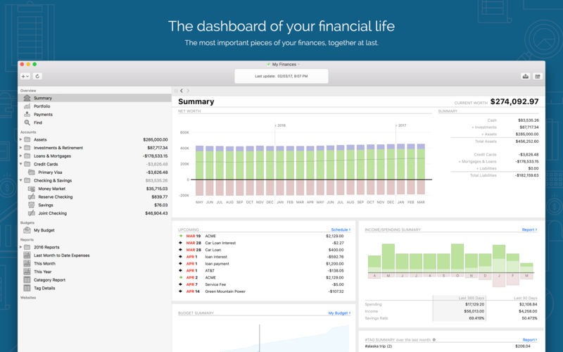 Banktivity 7 ushers in a new level personal finance management software for macOS. Whether you’re taking your first steps in getting your financial house in order, or you’re a seasoned veteran of financial software, Banktivity 6 helps you take complete control of your money.