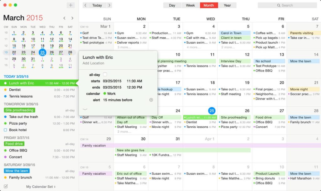 Fantastical’s natural-language engine is expressive and intelligent, so you can write in your own style. Fantastical also automatically recognizes the location of your event and can even invite people from your Contacts to the event.