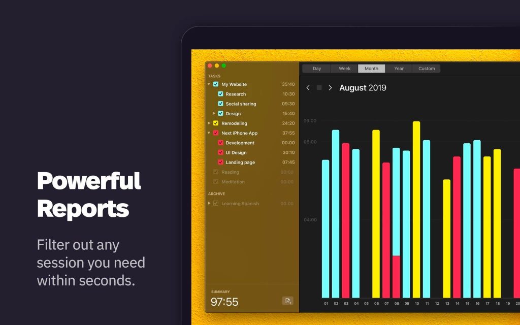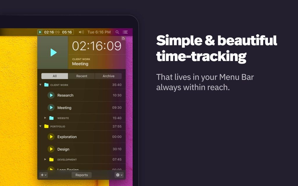 - Auto-Tracking: The Auto-Tracking technology automatically tracks the time for you, based on what you tell it to track. This way you keep the control over it, but the need to manually start or pause the timer goes completely away.