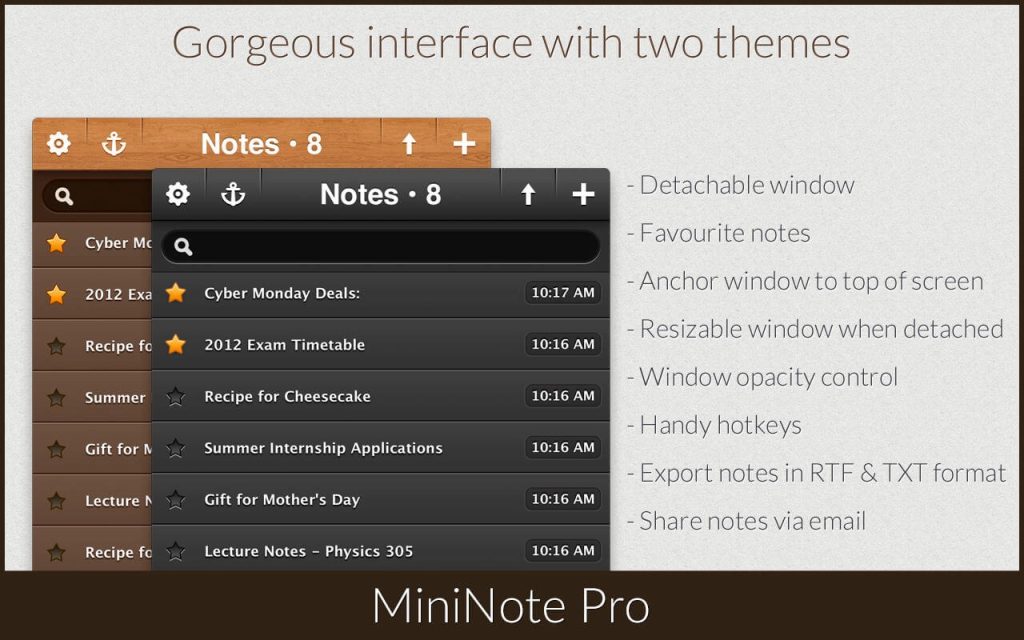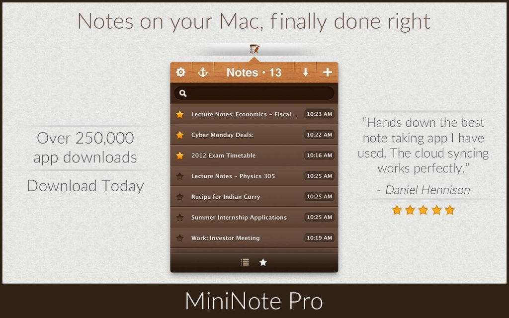 MiniNote Pro is quite simply the best notes app you will ever use. It has been engineered from the ground up to offer the fastest and most pleasurable note taking experience possible. Try it for a week and you’ll be hooked for life.