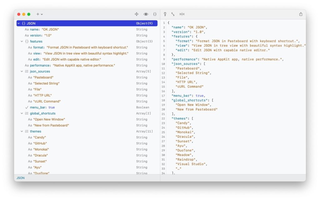 OK JSON is a native app built for Intel and M1 Mac machines. It is a JSON formatter and viewer, well suited for developers who need to work with JSON frequently, especially web developers. With OK JSON, you can view JSON in a tree view with beautiful syntax highlight.