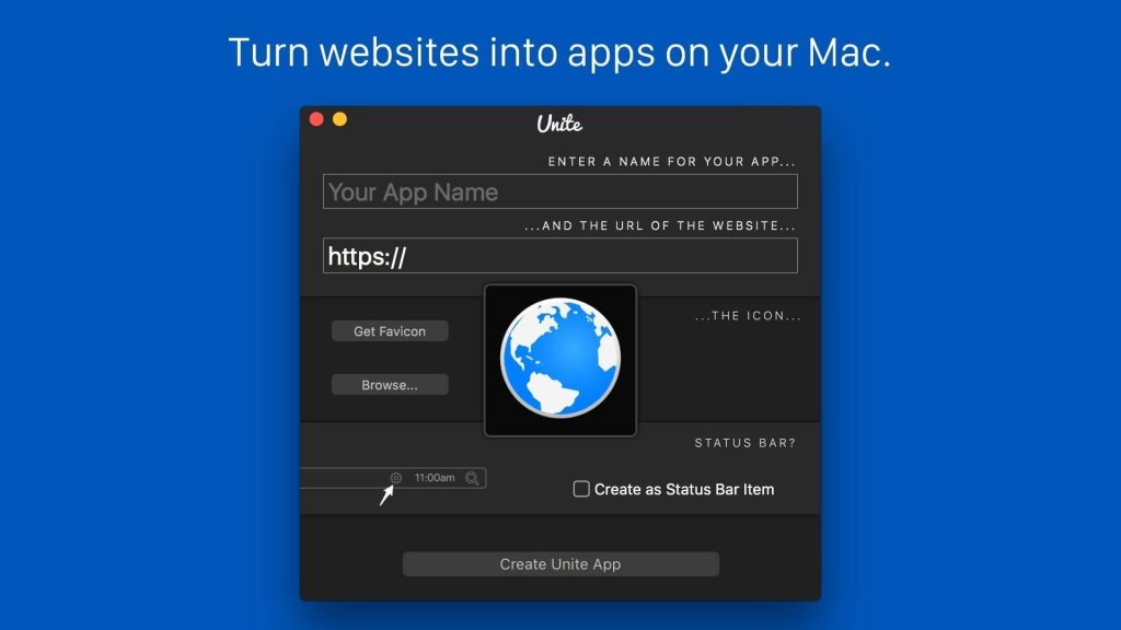 Unite allows you to quickly and easily turn websites into full-featured, native apps on macOS. Using the revolutionary Unite browser as a backend, each Unite app features its own browser, while remaining incredibly small and full-featured. And, because Unite apps are each a unique browser, they feature separate cookies and settings, as well as support for user scripts and user styles. In addition to modern web browsing features, Unite apps include macOS-specific features, including notifications, TouchBar support, the ability to pin apps to the status bar, and much more.