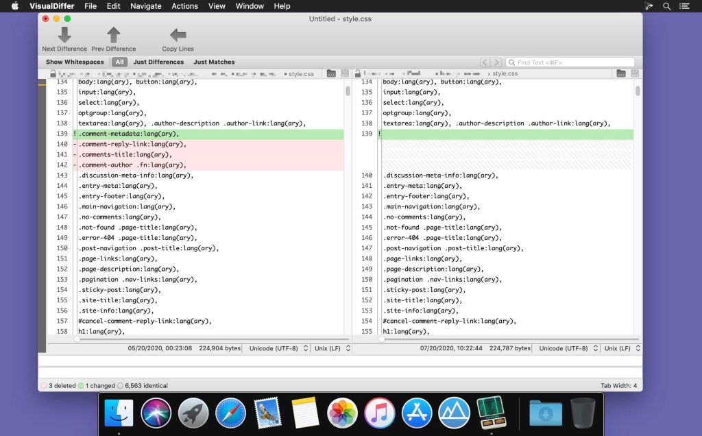 Visual Differ compares side-by-side folders and files using colors to visually show differences. From the Folder view it’s possible to make operations on folders and files like copying or deleting.