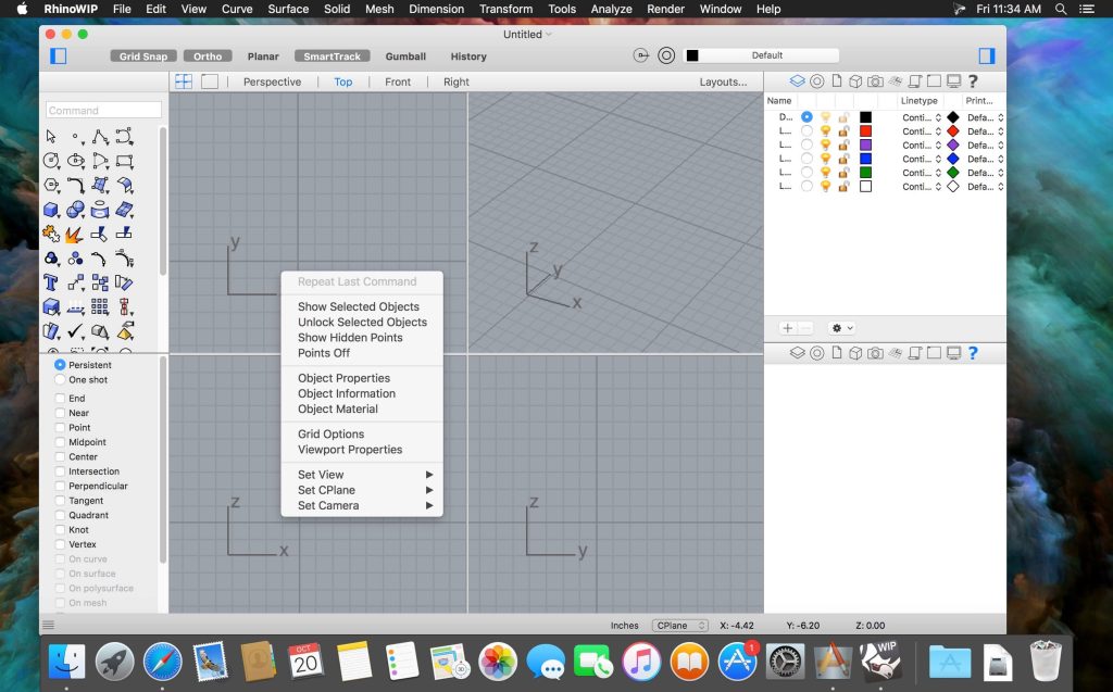 Rhino- Versatile 3D modeler. Rhinoceros can create, edit, analyze, document, render, animate, and translate NURBS* curves, surfaces, and solids, point clouds, and polygon meshes. There are no limits on complexity, degree, or size beyond those of your hardware.