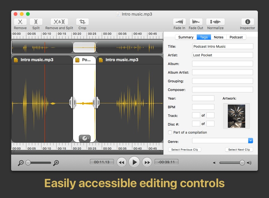 Fission can crop and trim audio, paste in or join files, or just rapidly split one long file into many. It’s streamlined for fast editing. Plus, it works without the quality loss caused by other editors, so you can get perfect quality audio even when editing MP3 and AAC files.