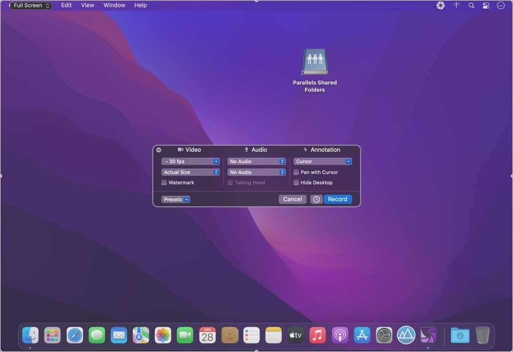 - Record Retina quality on supported Macs.