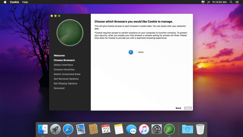• A number of removal schedules are possible: When quitting Cookie, when a Browser is Quit, on computer login, On computer waking from sleep, on a customizable time schedule, or entirely manually