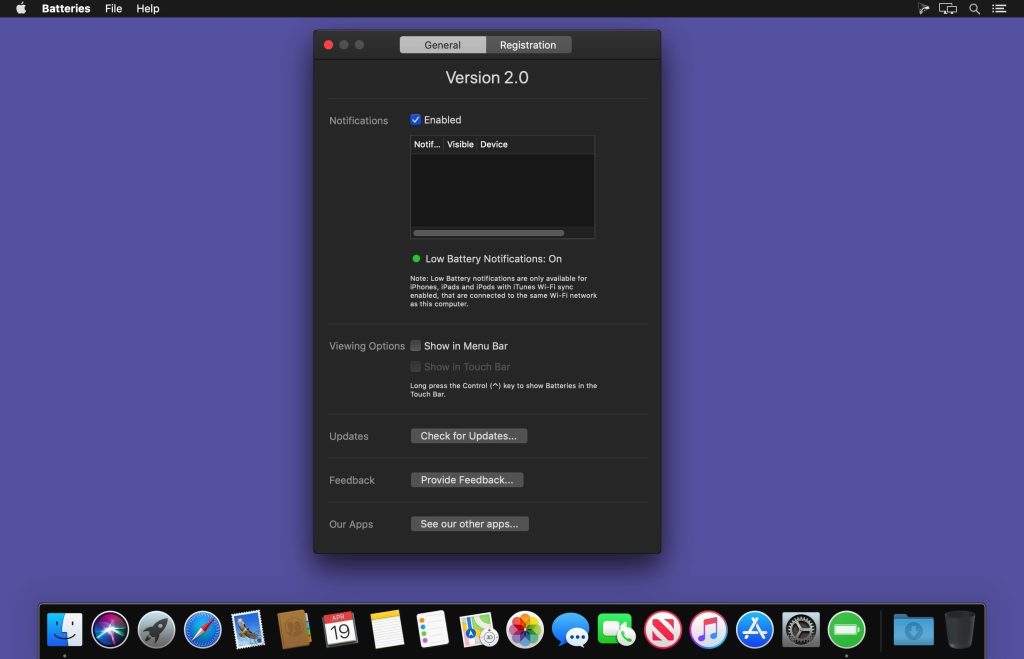 Track all your devices’ batteries from your Mac. Get notified when they need recharging. Supports iPhone, iPad, AirPods and bluetooth devices.