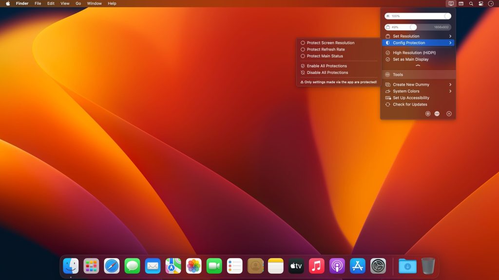 • Easily change the resolution of your real and dummy displays via a slider (or submenu) from the menubar.