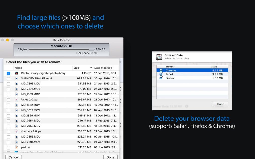 Free up tons of disk space with Disk Doctor by removing gigabytes of unneeded files from your hard drive.