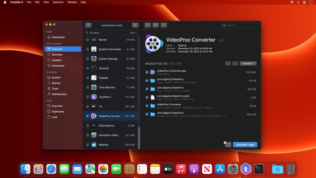 TrashMe is a powerful uninstaller with other great useful tools to clean your Mac.