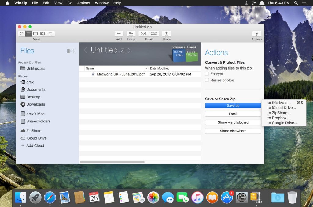 – Connect to iCloud Drive, Dropbox, Google Drive and ZipShare right from WinZip.
